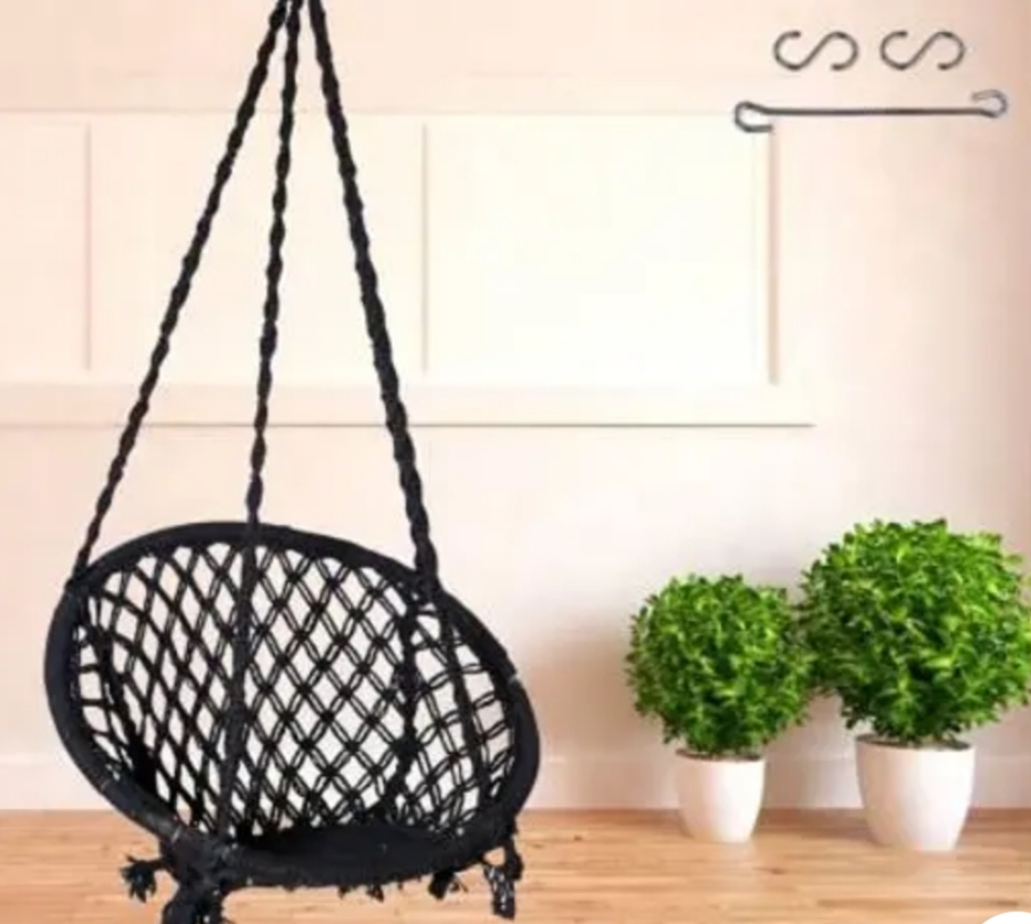 Patiofy Made in India Round Large Swing Chair with Free Hanging Accessories || Hammock Hanging Jhula for Indoor & Outdoor, Garden, Balcony || 100% Original Cotton Rope Used