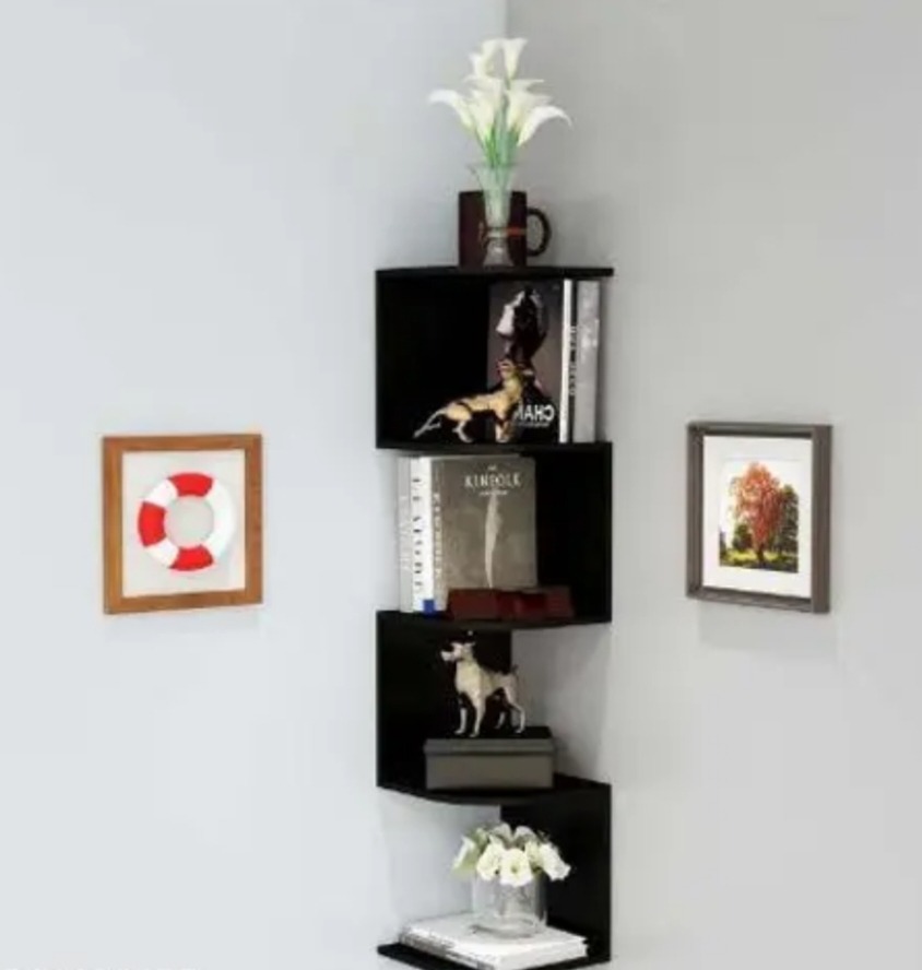 Threehouse crafts Decoretive Corner Zig Zag Wall Shelves, Office Wall Decor, Home decor, Living Room Wall decor
