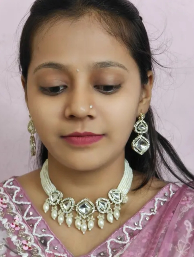 Kundan and crystal necklace choker set for women